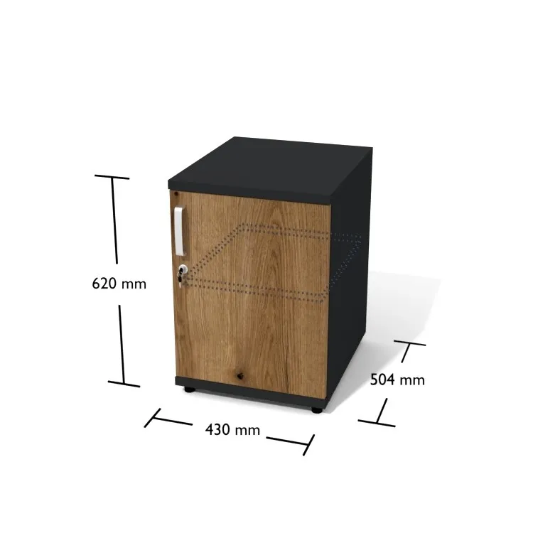 Banko altı kullanımlar için tasarlanan, kilitli kapaklı ve hareketli keson dolap; dayanıklı MDF-lam yapısı ve tek raflı iç hacmiyle düzenli depolama sağlar.